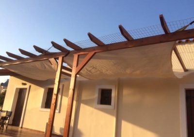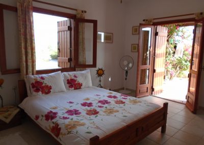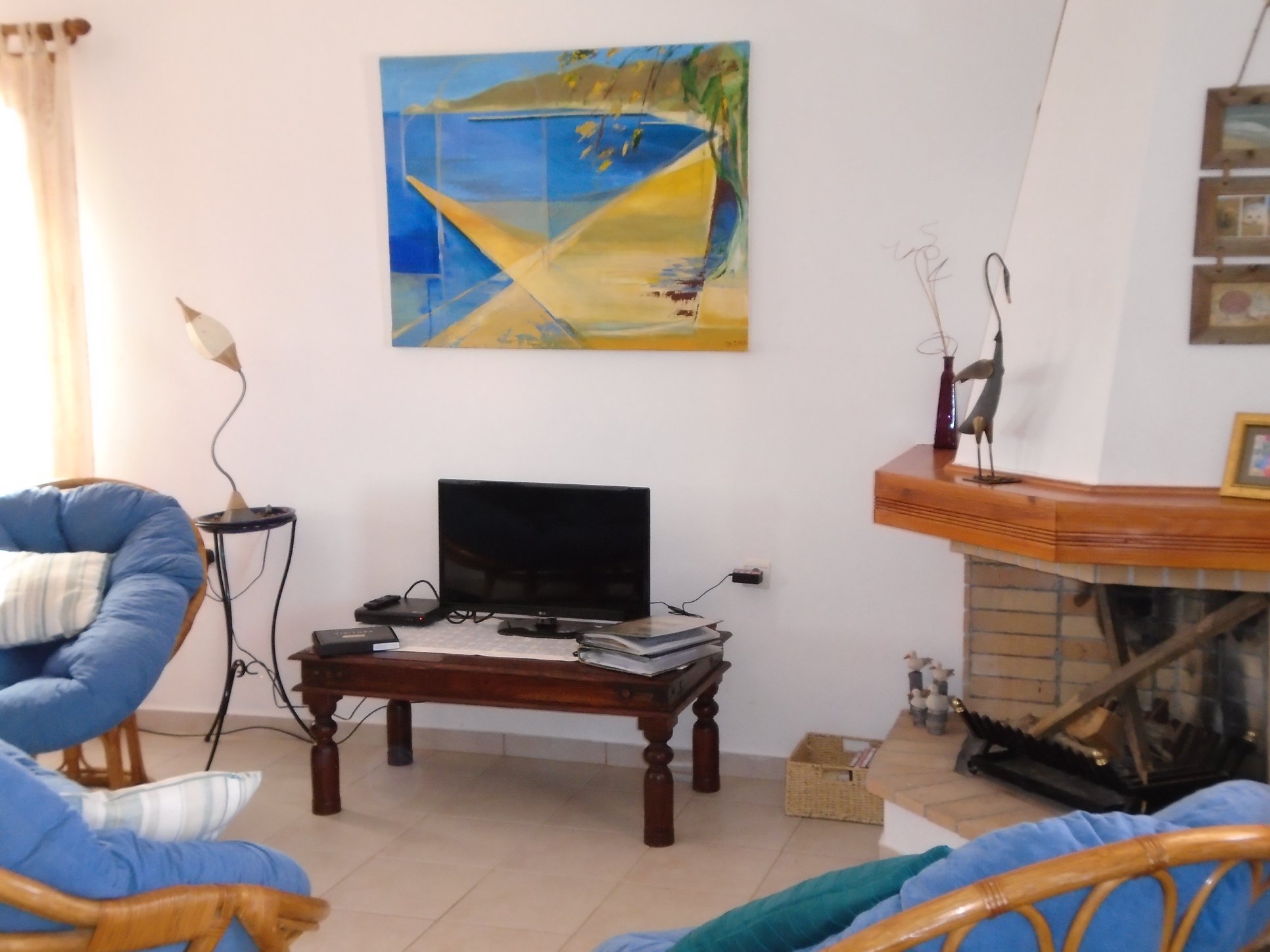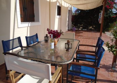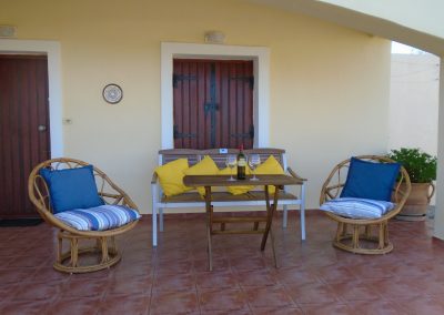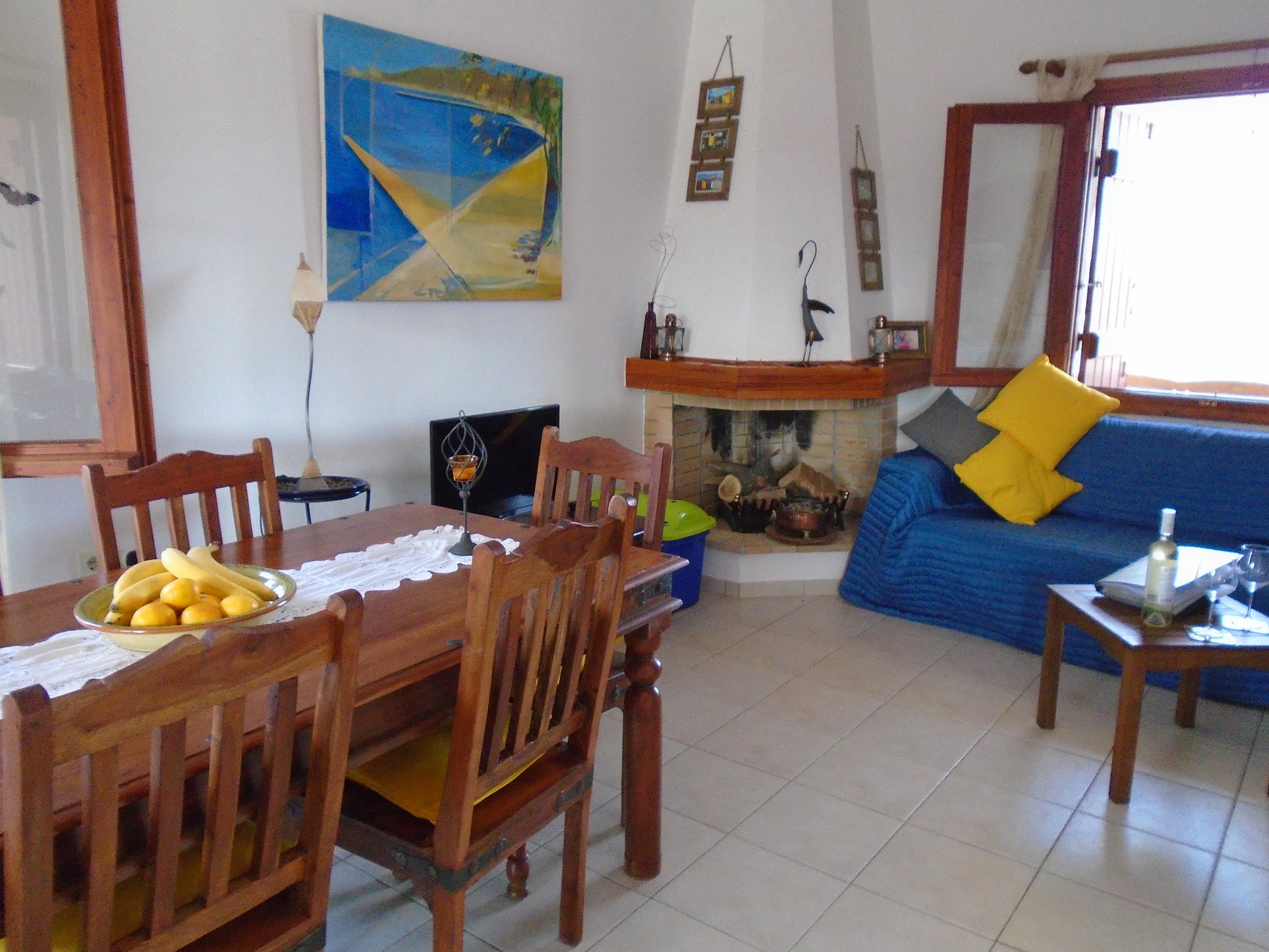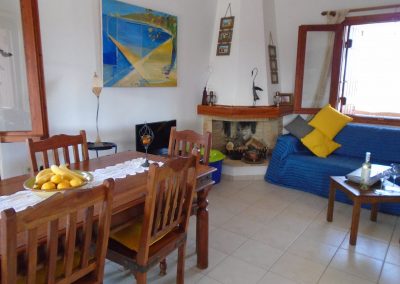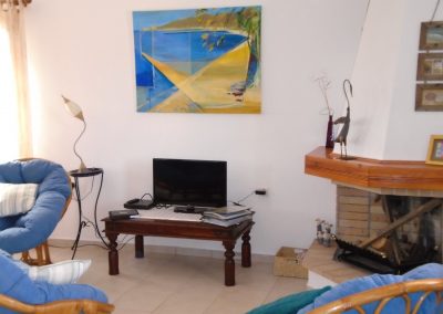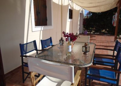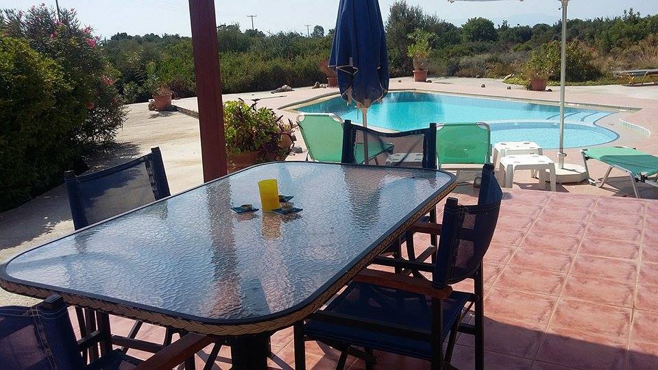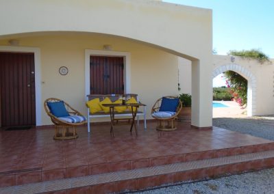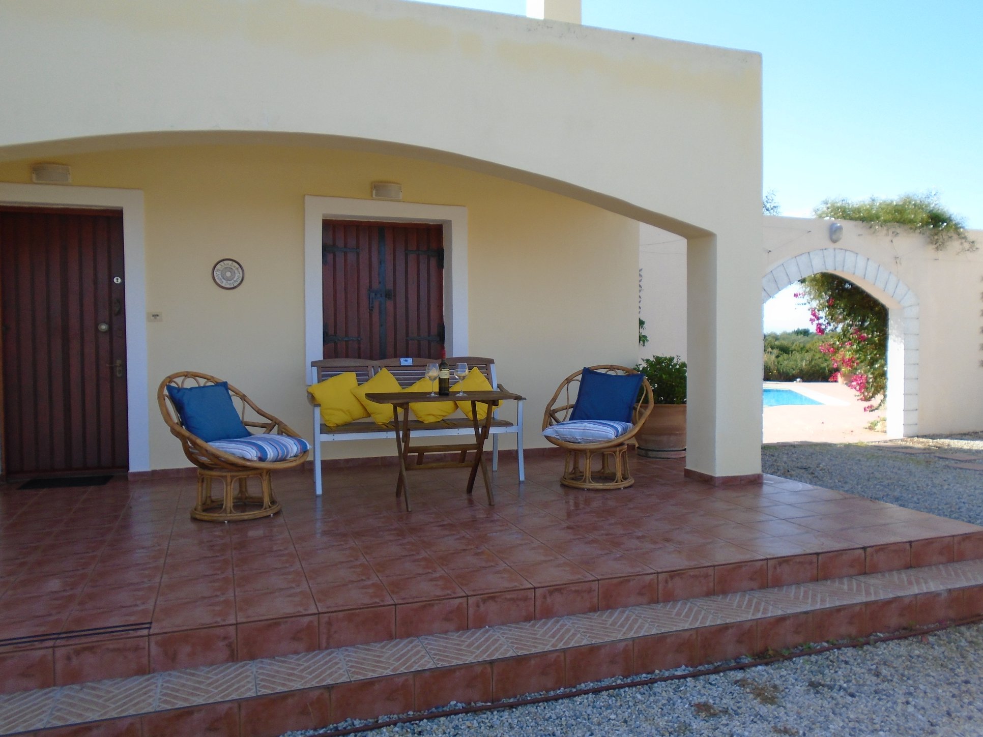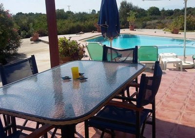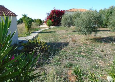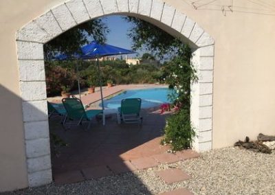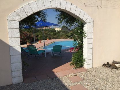 The villa comprises one double en-suite and one twin en-suite with an extra bed for either double room or lounge so can sleep 4-5 people. There is an open plan lounge/diner/kitchen/hallway and front and back patios. The swimming pool (with toddlers’ area) and a large garden comprising 4,000 square metres of private land with olives, oleanders, shrubs and herbs, is shared with the one villa next door. There is ample parking. Air conditioning is installed in both bedrooms. The villa is fully equipped with washing machine, oven/hob, fridge/freezer, Microwave, TV, DVD, music stereo, books, games and some small toys for little ones. All linen and towels are provided (including beach towels) and there are hairdryers in each bedroom. There is a barbeque by the pool and Wi-Fi installed for the use of guests.