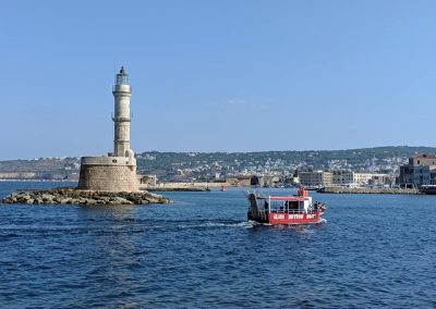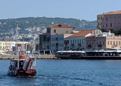 MARATHI – on the south coast of the peninsular a little further away. This is a small port with beaches both sides – one quieter with a beach taverna serving local fish. The views of Souda Island, Kalives and Almerida are lovely. The port also provides boat trips to Rethymnon.