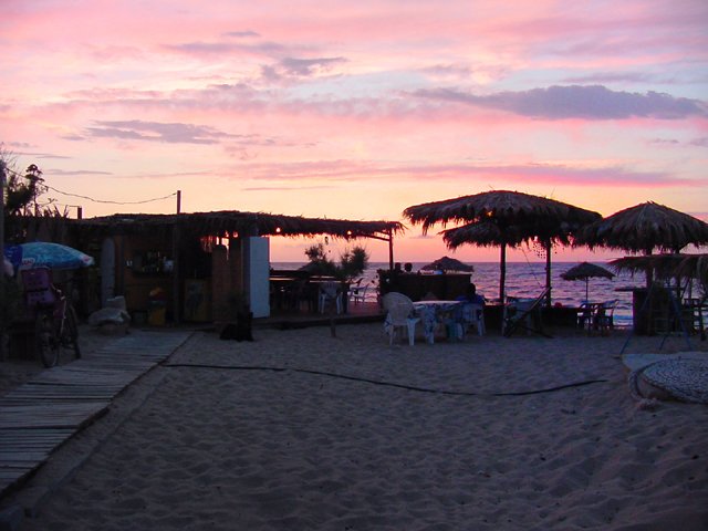 SUNSET BEACH CAFÉ on Sunset Beach which is signposted (not very well) from Stavros main beach. The café is run by a French lady – very good food but a bit pricey.