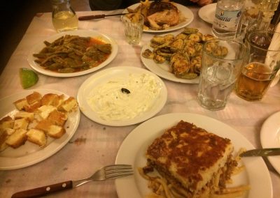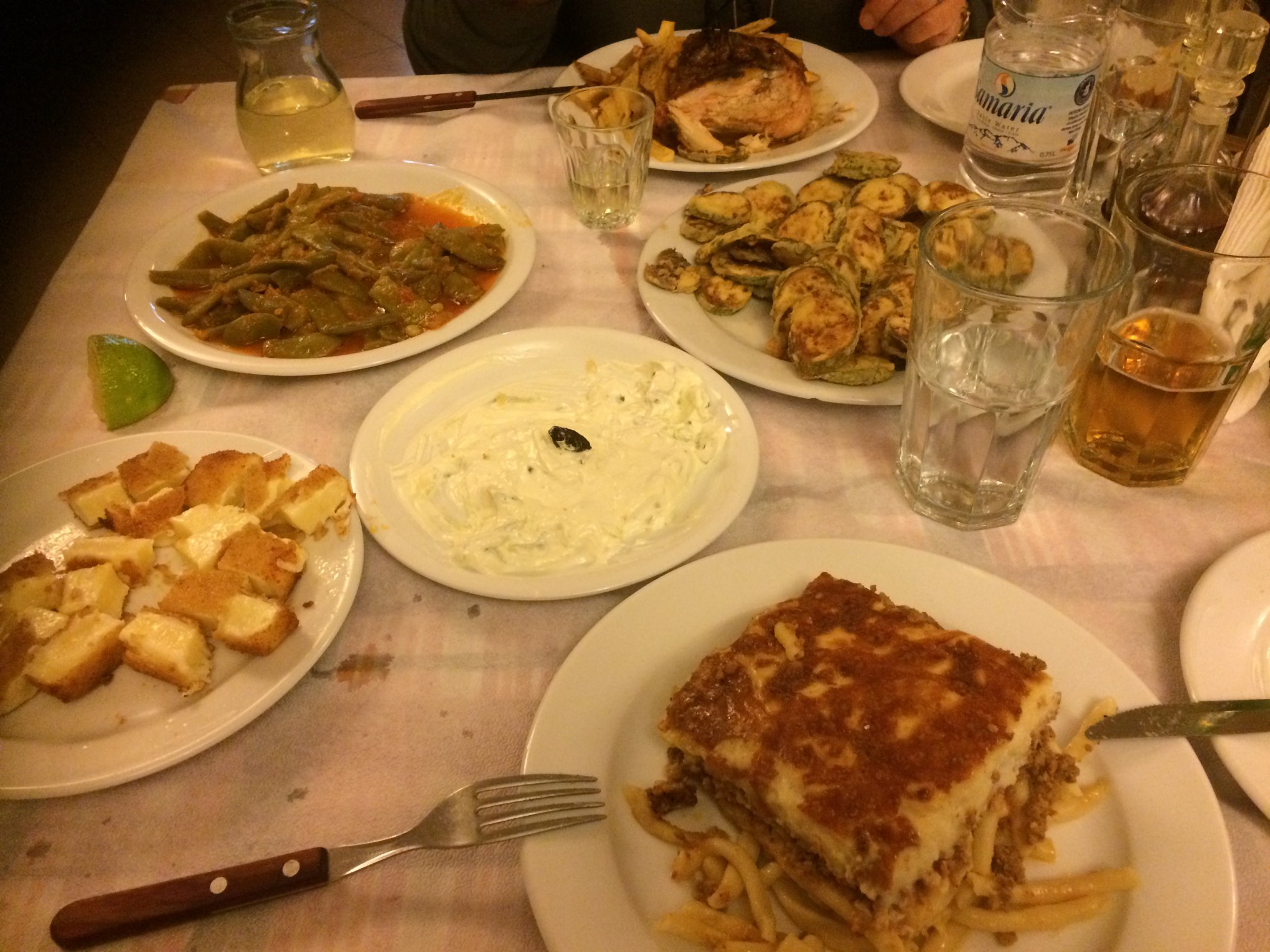 ALMYRIKI – the windmill taverna -right by the sea at the far end of Stavros. Excellent food – good to have a selection of starter dishes. Seating is only outside.